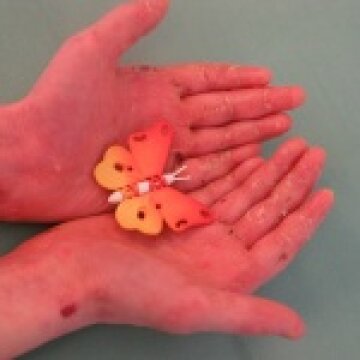 Odběr krve je pro naše Motýlky léta strašákem. Pravdou je, že u těžkých forem EB odběr krve není jednoduchý, navíc končetina před odběrem se musí „zaškrtit“ jinak než u pacientů se zdravou kůží.