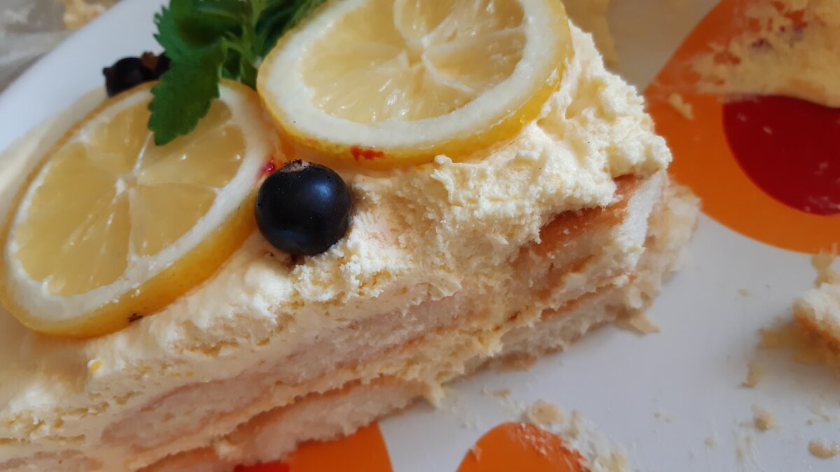 Pokračujte opět piškoty namočenými v sirupu a druhou polovinou krému. Krém uhlaďte stěrkou, mísu zabalte do potravinářské folie a dejte na 8 hodin uležet do ledničky.