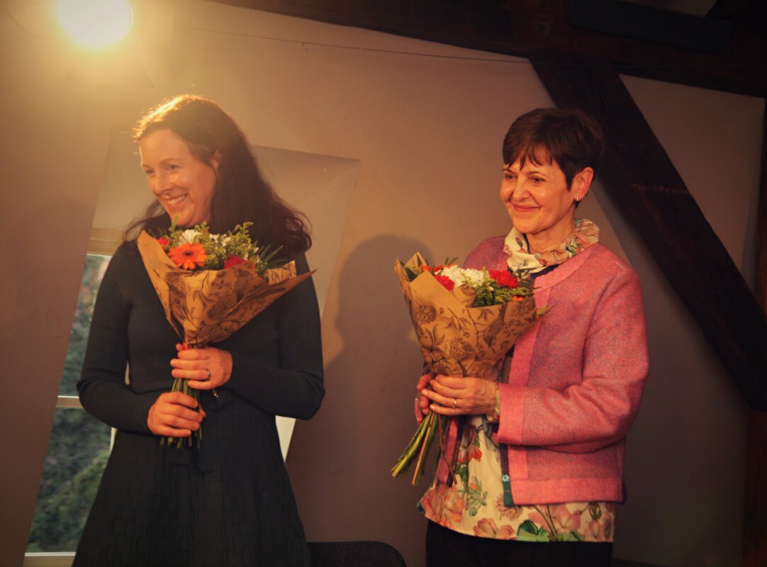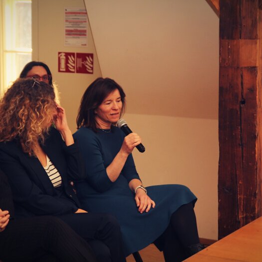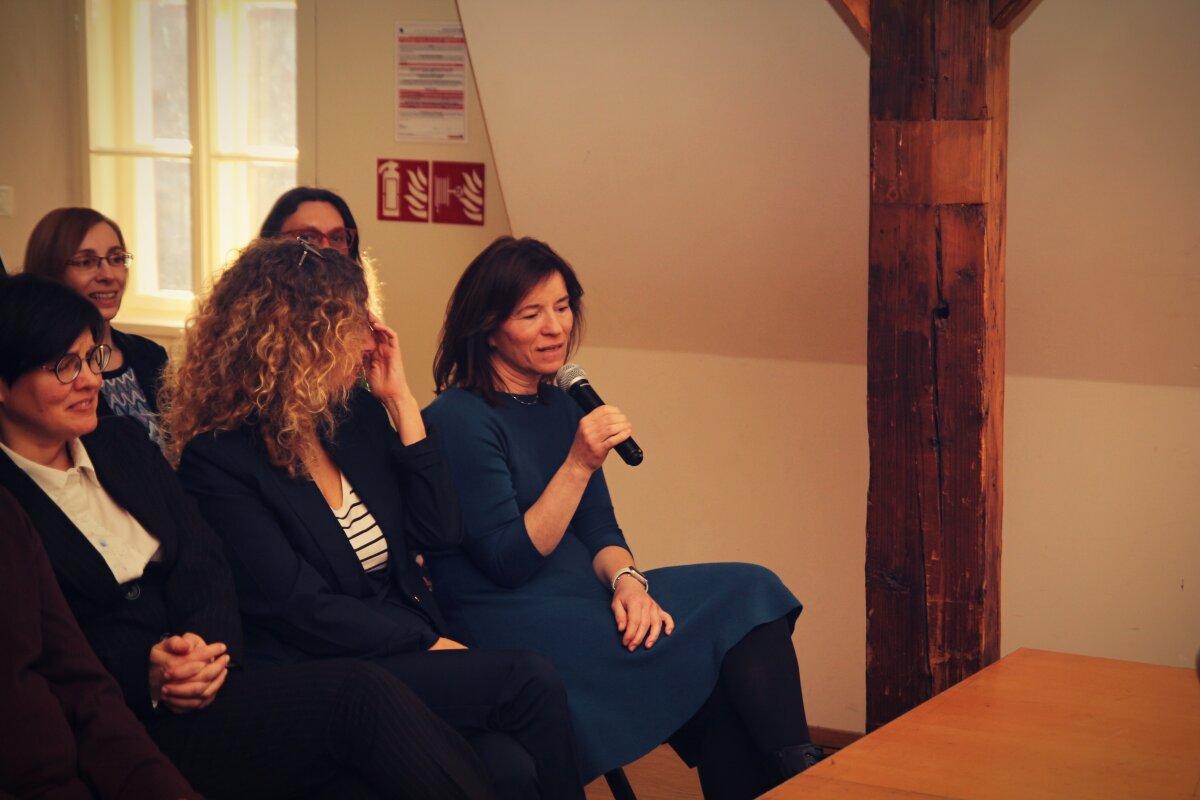 Diskusi otevřela zakladatelka EB Centra MUDr. Hana Bučková, Ph. D., která připomněla začátky specializované péče o pacienty s EB , vývoj diagnostických a léčebných metod, vybudování mezioborového týmu specialistů pro děti a dospělé pacienty z celé ČR i zahraničí. Spolu s dermatoložkou MUDr. Ing. Janou Kýrovou, Ph. D. hovořily o významu mezioborové spolupráce, komplexního přístupu k léčbě, o zavádění nových léčebných postupů včetně genové terapie, o vlastním klinickémvýzkumu. Do diskuze se zapojili i další specialisté EB Centra.