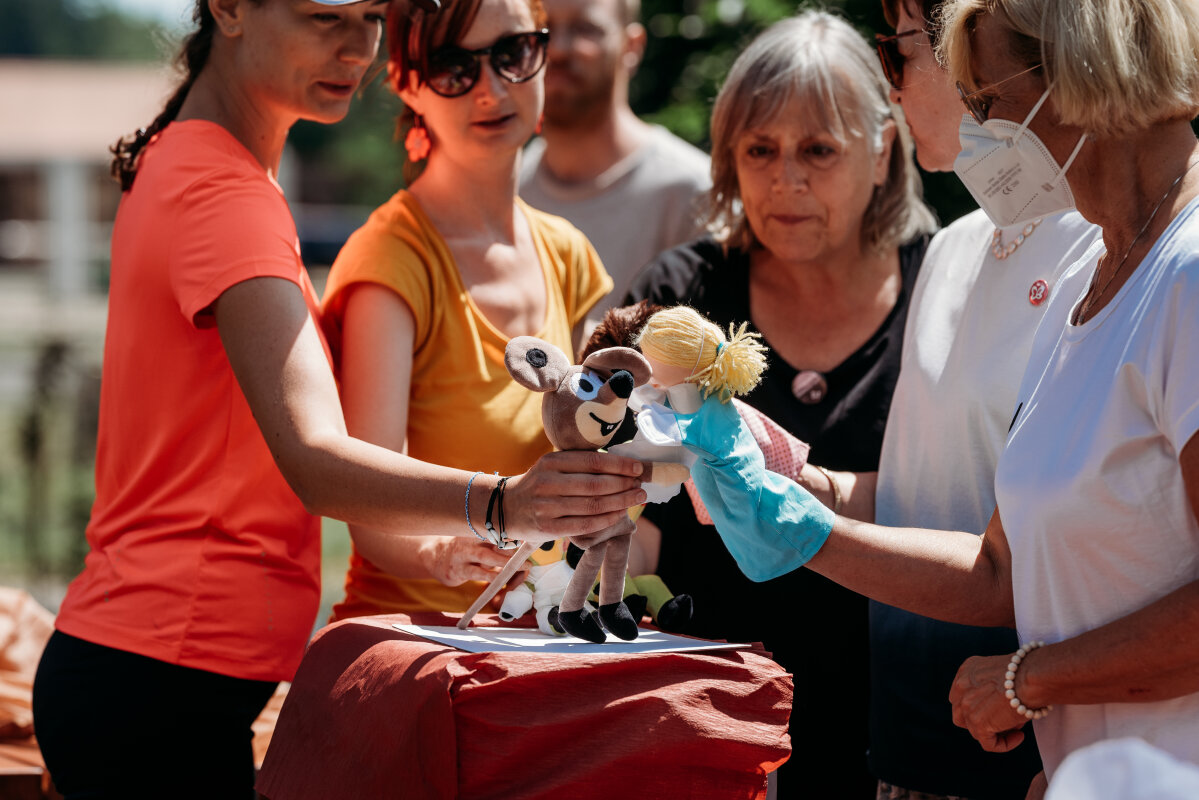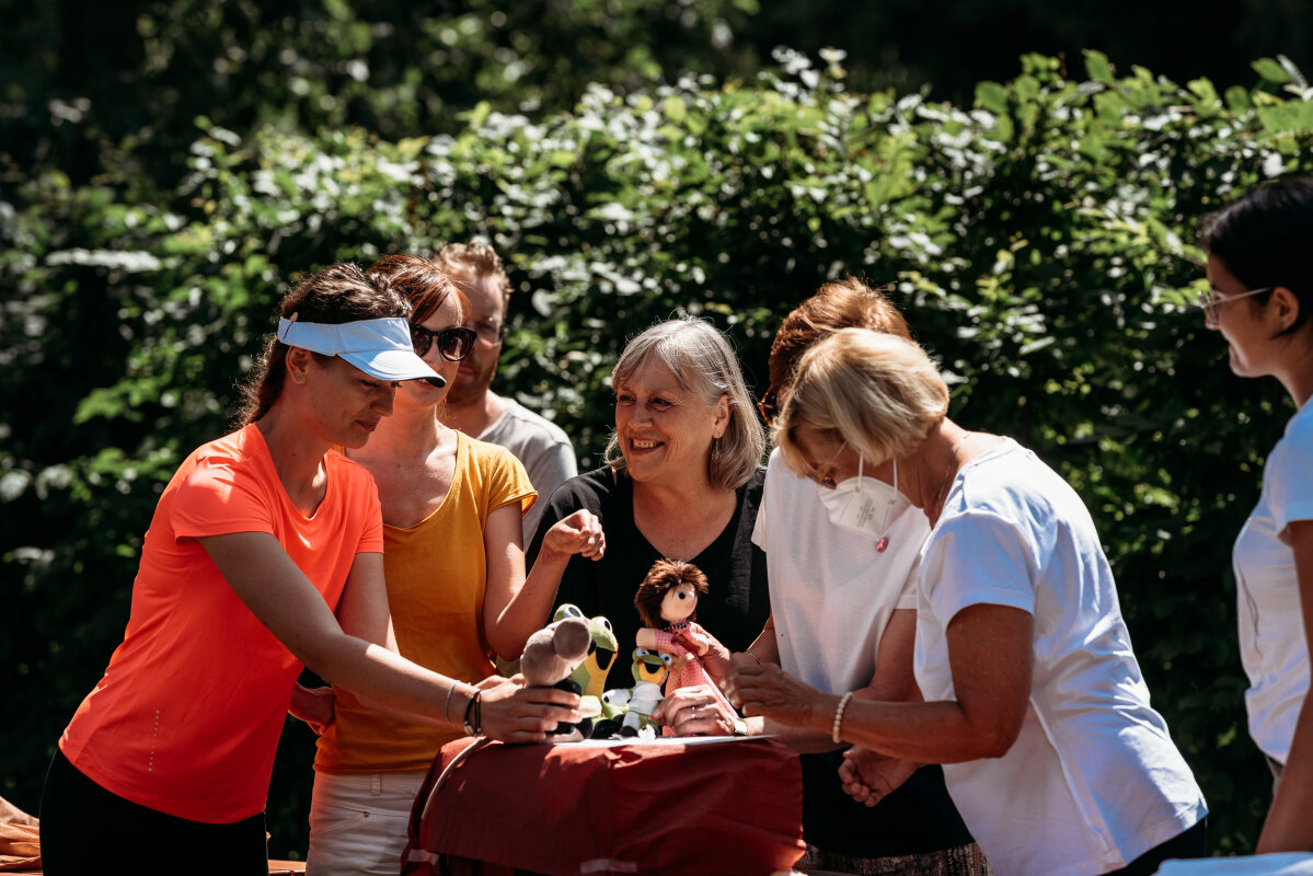 Hned začátkem týdne nás svojí dvoudenní přítomností poctila MUDr. Hana Bučková, Ph. D. - dermatolog a koordinátor klinického EB Centra. Následně se k nám připojila i MUDr. Jitka Vokurková, Ph. D. (plastický chirurg) a prim. MUDr. Renata Gaillyová, Ph. D. (klinický genetik), které nám taktéž věnovaly svůj drahocenný čas. Tyto tři milé dámy si nejen pro malé Motýlky připravily loutkové představení, jehož účelem bylo přiblížit hravou formou aplikaci mezenchymálních buněk, která by se jich mohla v dohledné době týkat.