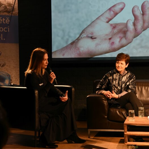 Organizace podporující pacienty s vzácnými onemocněními mívají často obtíže s financováním své činnosti. O tom, jaké jsou trendy v dárcovství, jak oslovit firmy a další dárce a jak s nimi komunikovat, mluvila na diskusi manažerka dárcovských programů Fóra dárců Klára Stuchlá Libertová. A úhel pohledu firmy, která letitě a dokonce na mezinárodní úrovni podporuje organizaci DEBRA, představil manažer společnosti Mölnlycke Health Care Stanislav Šulák. Co říct měla rozhodně také oděvní designérka Liběna Rochová. Ta má velmi blízko hned k několika neziskovým organizacím, které aktivně podporuje. Režisér Jakub Jahn se poslední dobou intenzivně věnuje zkoumání pocitu štěstí. Pozitivní myšlení a přístup je jednou ze základních podmínek dobrého zvládnutí života se vzácným onemocněním. V hledišti byli zástupci organizace DEBRA ČR a zástupci jiných pacientských organizací, kteří se zapojili do diskuse svými podnětnými myšlenkami. Diskuse si kladla za cíl směrovat k vzájemnosti, spolupráci a ukázat, že koordinovaná podpora a spolupráce je to, co pacientům s VO pomůže nejvíce.